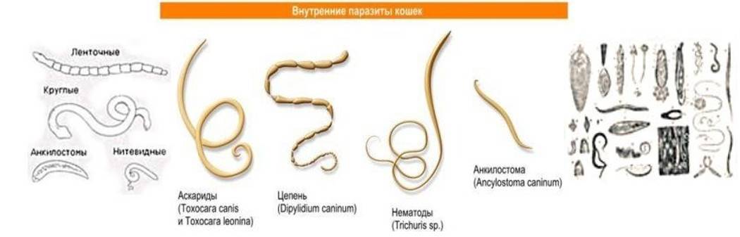 В большинстве случаев у кошек диагностируется заражение такими нематодами как анкилостомы и токсокары.