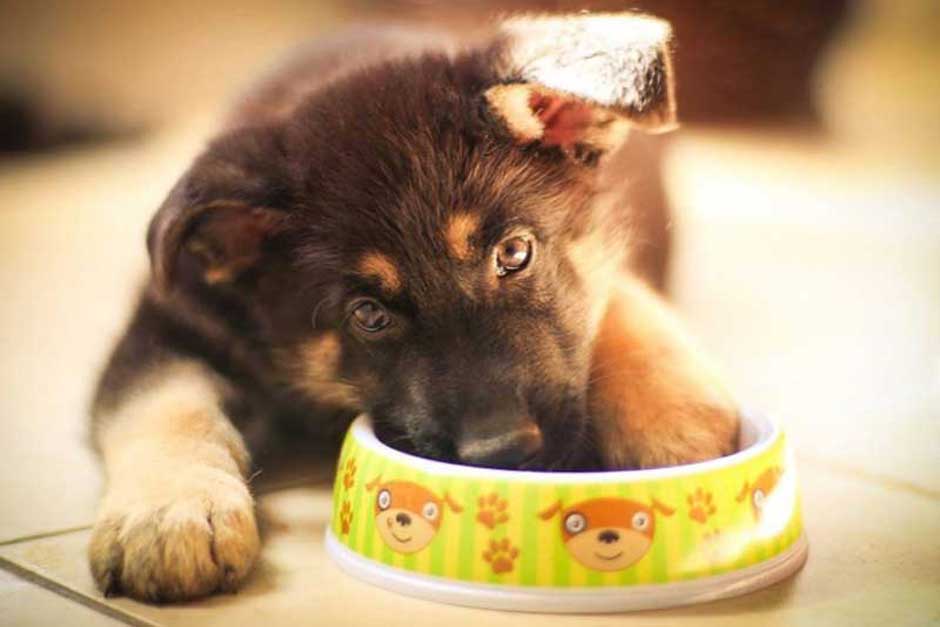 Обустраивая место кормления щенка миску нужно устанавливать на небольшом возвышении, чтобы она находилась на уровне груди животного, это поможет правильно формировать экстерьер собаки.