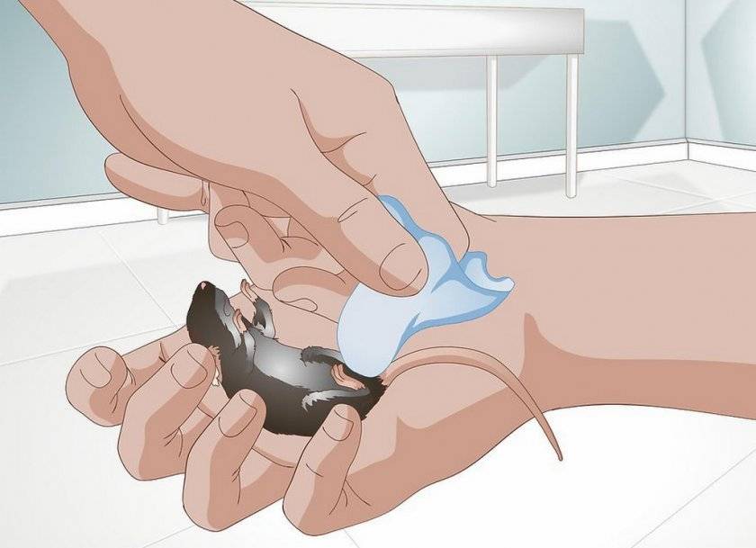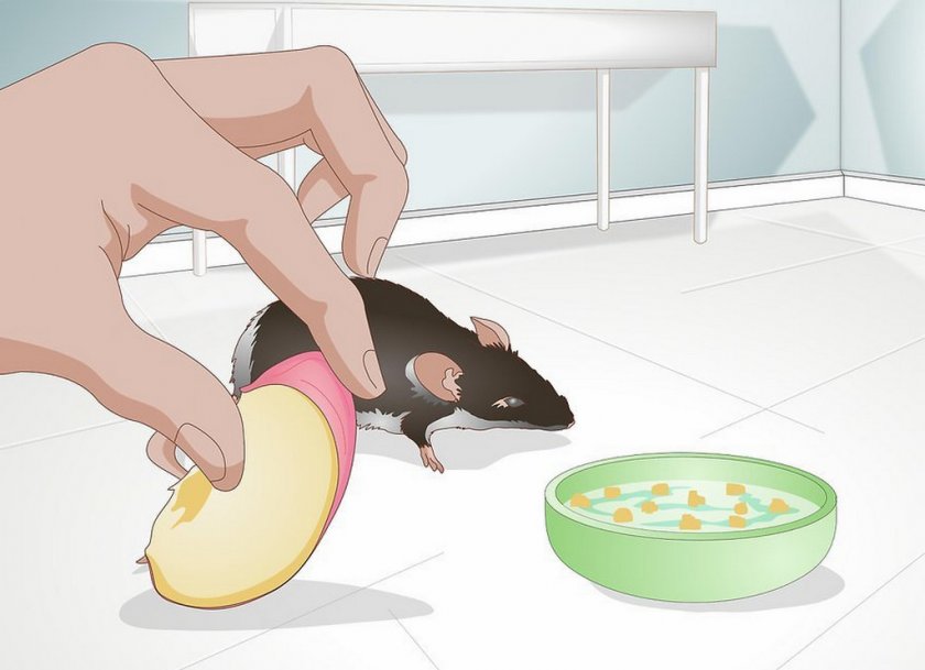 Мышатам следует делать массаж живота. Это поможет зверьку опорожнить кишечник и мочевой пузырь, так как в малом возрасте грызуны могут испытывать затруднения при этих процессах.