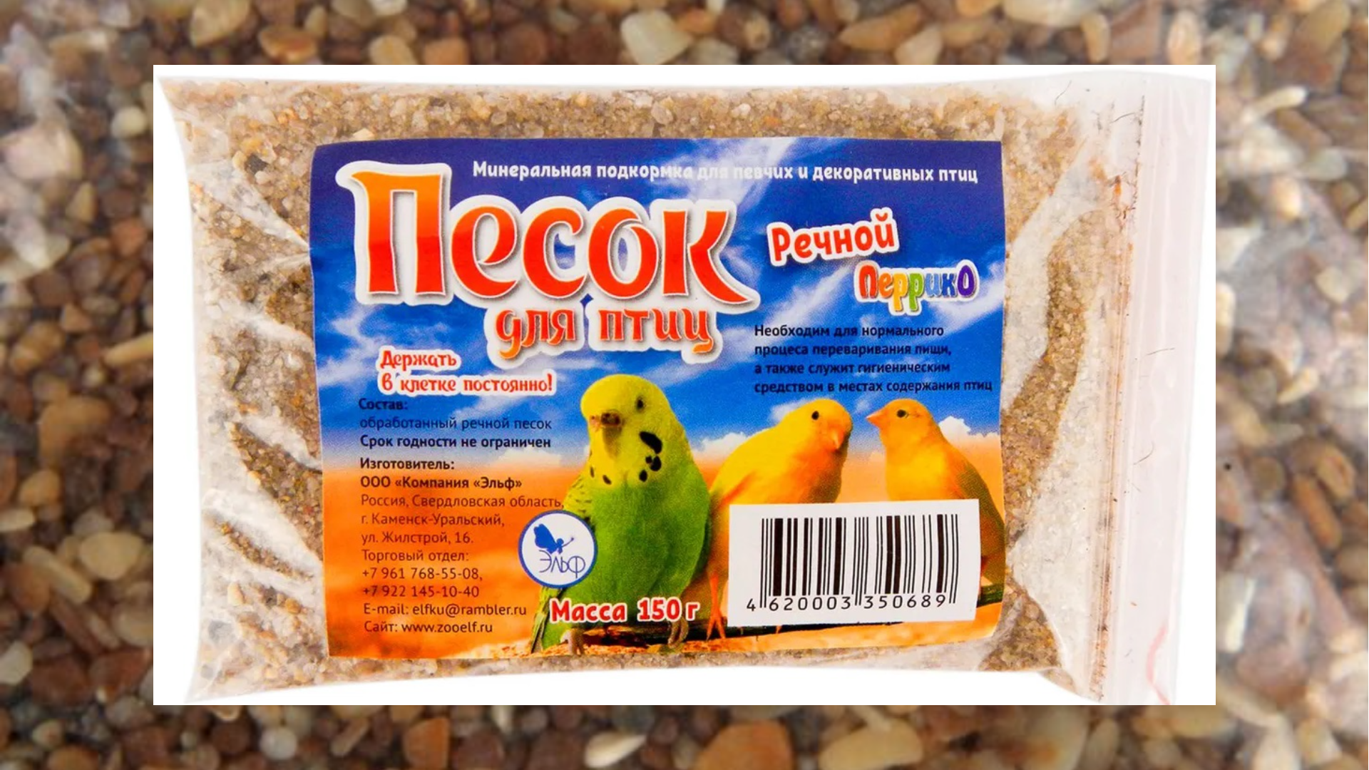 - Неорганический. Это мелкий речной песок. Давать его птице не рекомендуется, он является не только бесполезным, но и вредным. В организме попугая он не растворяется, забивает зоб и кишечник, что может привести к болезни или даже гибели птицы. Такой вид песка можно использовать только в качестве подстилки, насыпав на дно клетки. Первое время необходимо понаблюдать за птицей, чтобы она не стала его клевать.