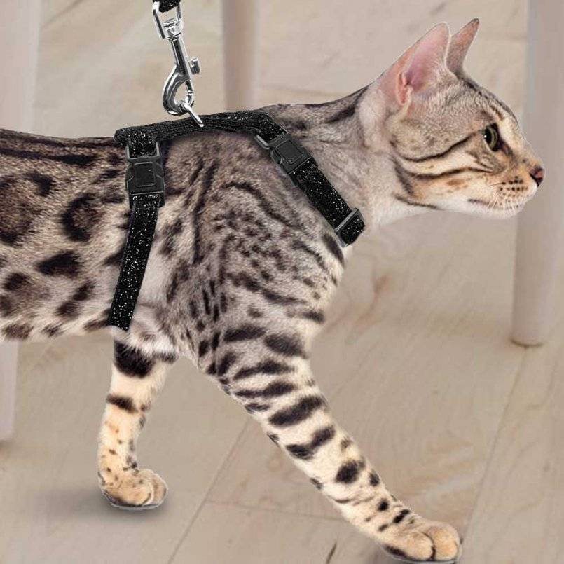 Поводок для кошек не подходит. Это обусловлено тем, что у представителей семейства кошачьих мышцы шеи гораздо слабее, чем у псовых. По этой причине резкий рывок животного может привести к ее травмированию.