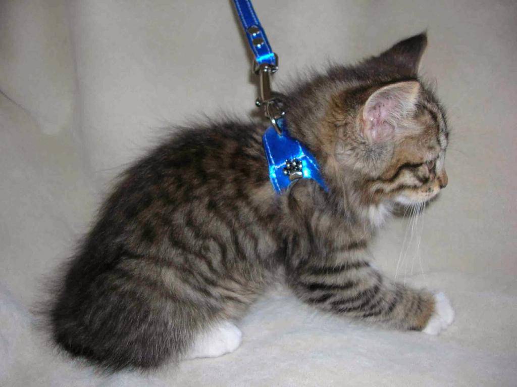 Привыкать к ошейнику с поводком животным удобнее с малых лет. Но иногда возникают ситуации, что поводок следует надевать на уже достаточно взрослого коту.