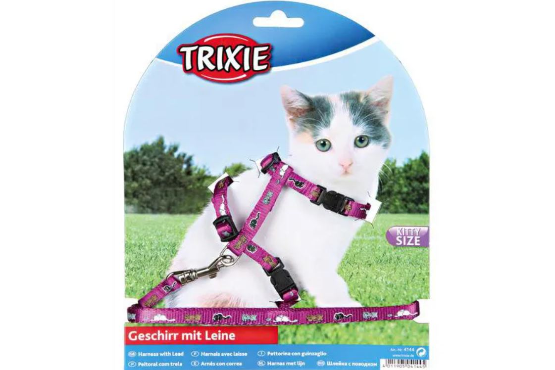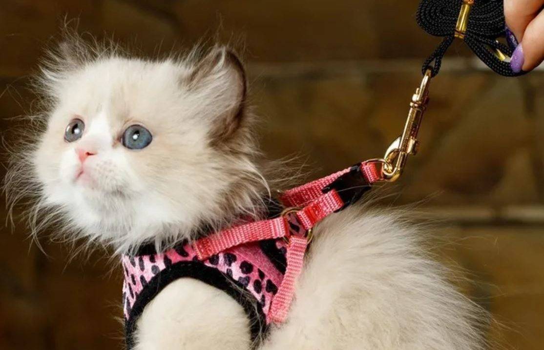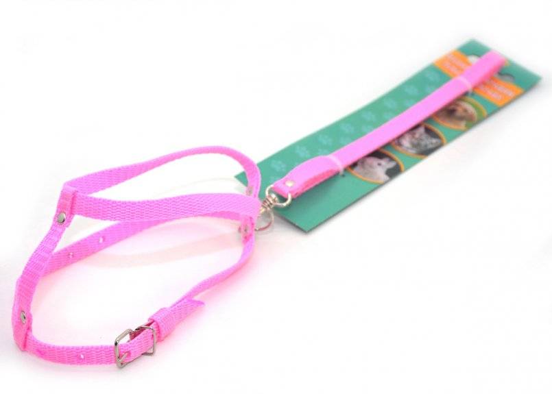 - Для кошек и котят подойдет мягкая шлейка из нейлона или хлопковой ткани, без лишних украшений (заклепок, страз), поскольку в них может путаться шерсть и причинять питомцу боль. Кожаная довольно жесткая, поэтому для котиков не годится.