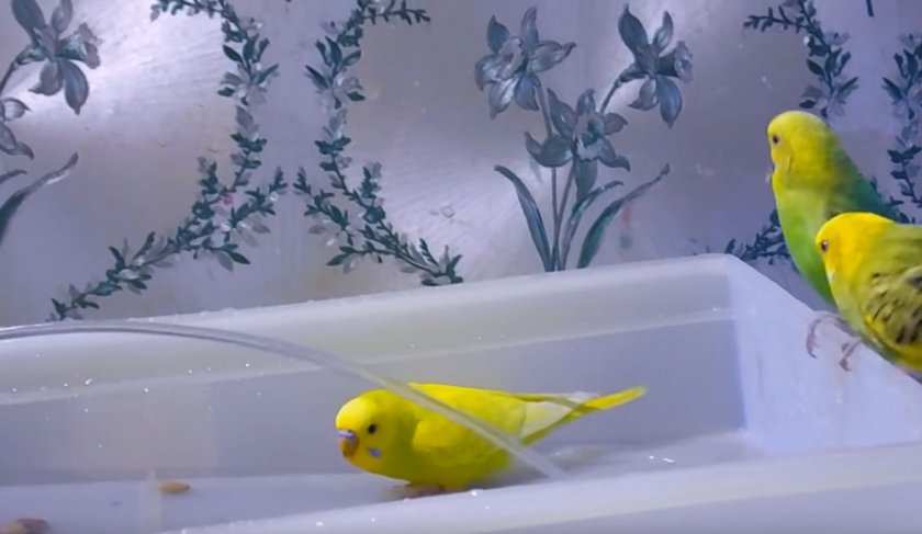 - попугай имеет постоянный доступ к емкости с водой, быстро привыкает и не испытывает страха;