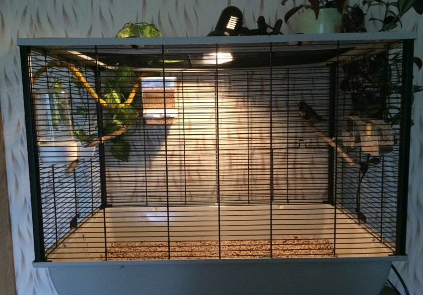Идеально, если на клетку будет попадать дневной свет, но при этом не будет ее перегревать. В противном случае вам придется установить специальные ультрафиолетовые лампы.