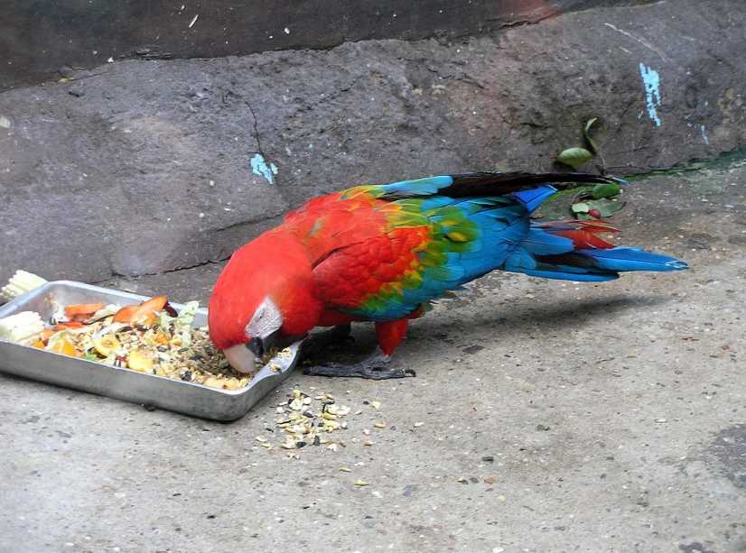 Такие птицы предпочитают разнообразие. Обязательным моментом является кормовая основа – это семена подсолнечника, пшеницы, конопли и т.д. Если хозяева решат кормить уже готовыми кормами, нужно выбирать продукцию, подготовленную специально для крупных попугаев. В день для одной особи средних размеров будет достаточно 50 грамм. Однако это не единственная пища, которую должен есть попугай ара.
