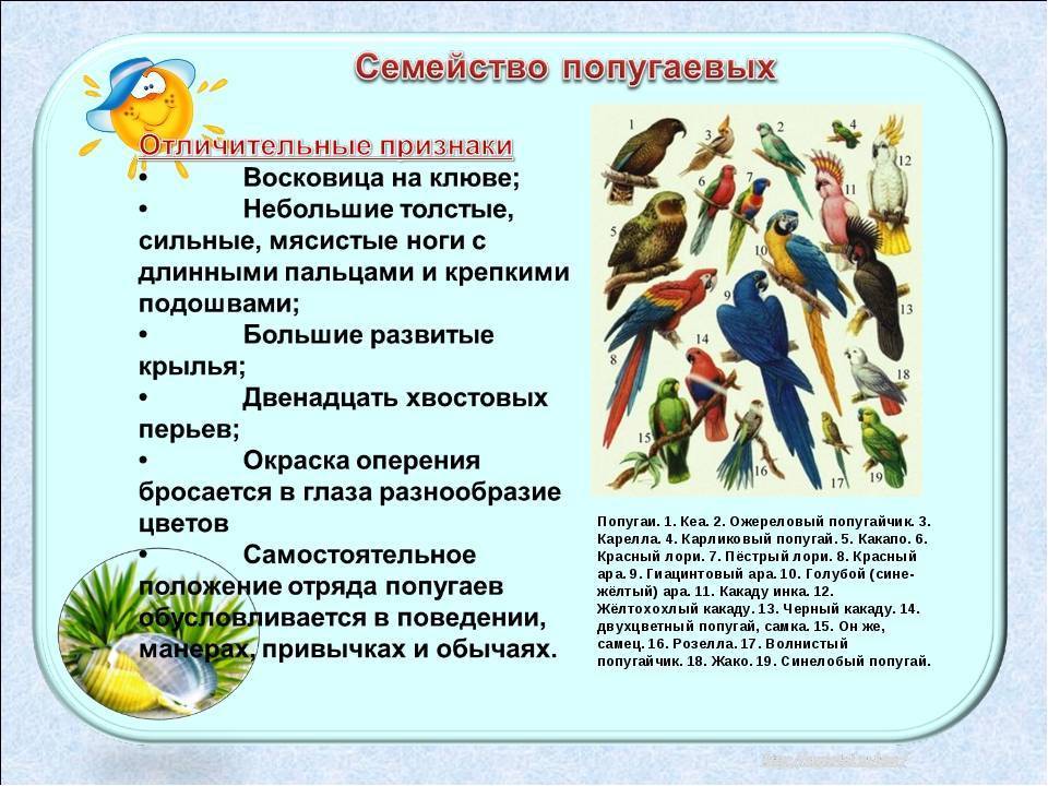 Данные птицы встречаются довольно редко у заводчиков, хотя обладают многими неоспоримыми преимуществами, к которым относится привлекательный вид, легкость приручения, артистичность и жизнерадостность. Существует 5 подвидов попугаев, но все птицы вырастают коренастыми и красивыми.