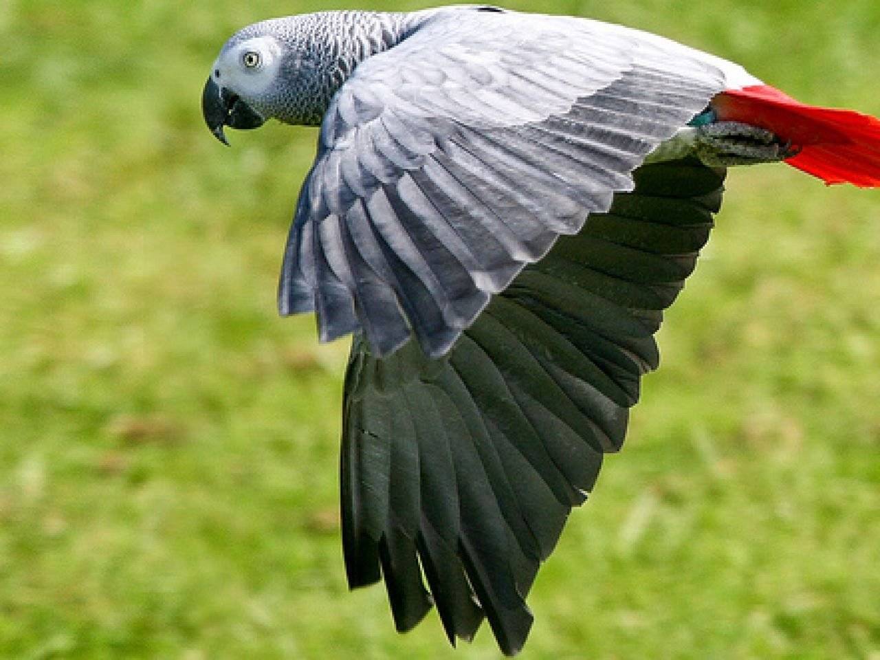 Королевский жако самый крупный из всех. Окрас темно-серый с многочисленными красными включениями.