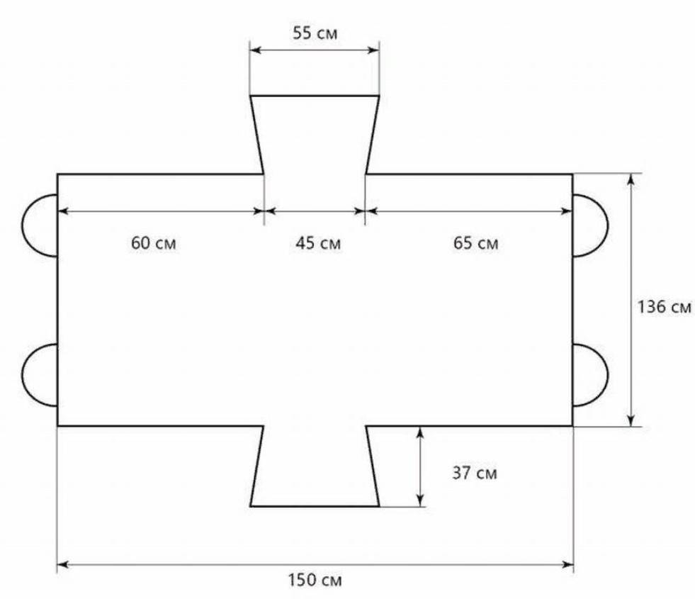 - Отметьте во всех получившихся выкройках место крепления гамака к подголовникам;