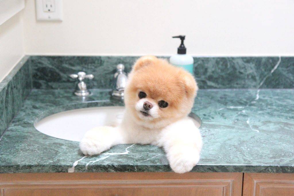Перед купание в домашних условиях пёсика обязательно расчёсывают пуходёркой. Делать это нужно максимально аккуратно, чтобы не повредить нежную кожу животного. После ванны собаку высушивают компрессором и оформляют шубку с помощью ножниц и расчёски.