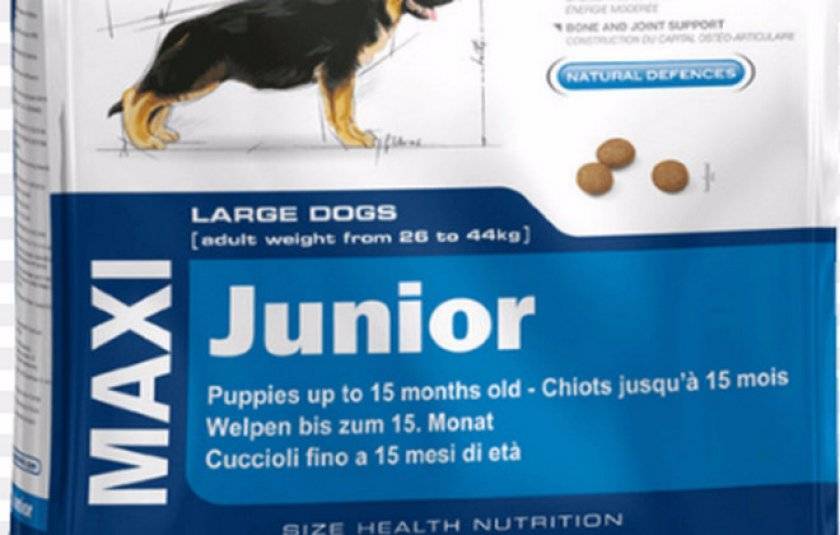 Maxi. Корм предназначен для пород больших размеров (взрослое животное весом от 25 до 45 килограммов).