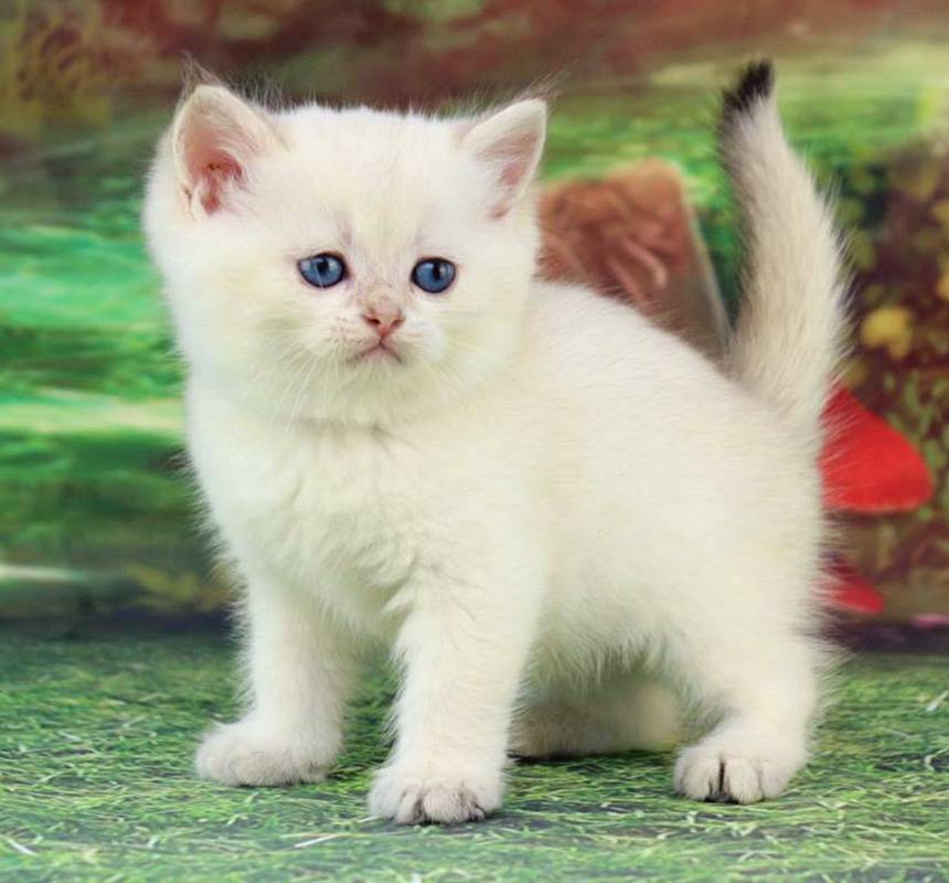 - ШотландецВнешне полностью соответствуют стандартам скоттиш-фолда и страйта. Шерстяной покров в основном серебристый или персиковый. Шерсть плотная, короткая, не прилегает к телу. Радужка бывает зеленого и синего цвета.