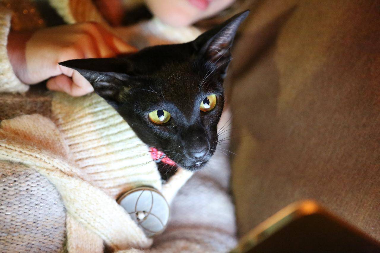 Один из самых интересных фактов — склонность копировать действия владельца. Из-за этой привычки ориентальную кошку порой проще научить пользоваться унитазом, чем предназначенным для нее лотком.