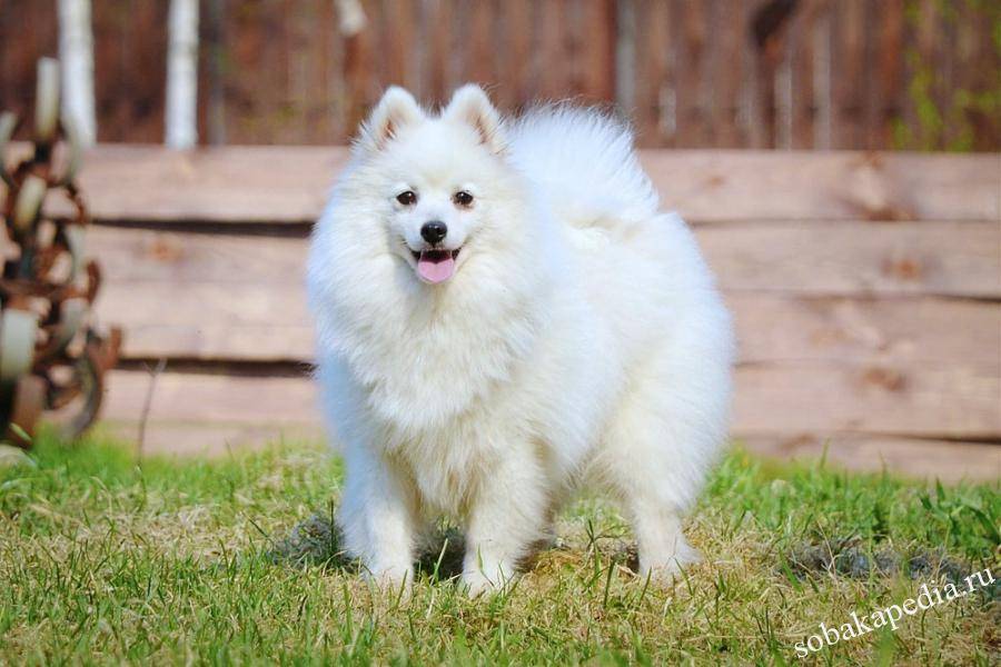 - Японский шпиц – сочетает красивый окрас самоеда и миниатюрность померанца. Рост около 40 см, вес примерно 10 кг. Из-за схожести с не признан АКС.