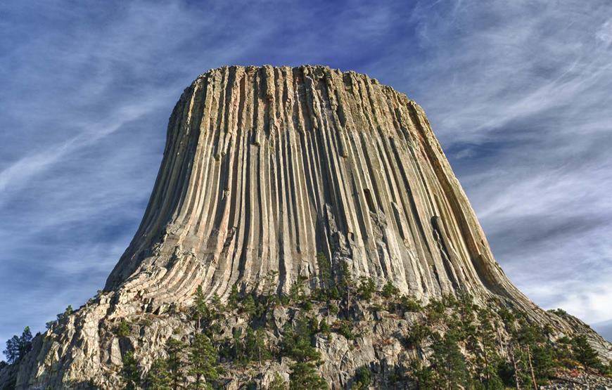 На территории Вайоминга также находится национальный памятник — Девилз-Тауэр (Башня дьявола). Это гора вулканического происхождения высотой 1556 м над уровнем моря, возрастом от 195 до 225 млн лет. Её склоны испещрены глубокими бороздами. По индейской легенде, их оставил гигантский медведь, который карабкался на гору, чтобы добраться до укрывшихся на вершине семи прекрасных девушек.