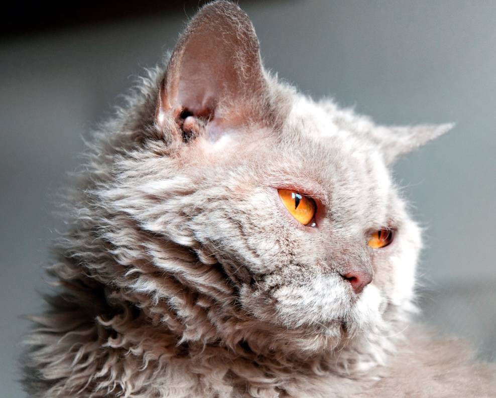 Сложность в уходе за шёрсткой заключается в том, что кучерявые волоски могут выпрямляться при расчёсывании. Чтобы знать, как ухаживать именно за вашим питомцем, проконсультируйтесь с заводчиком, у которого вы брали кошку.