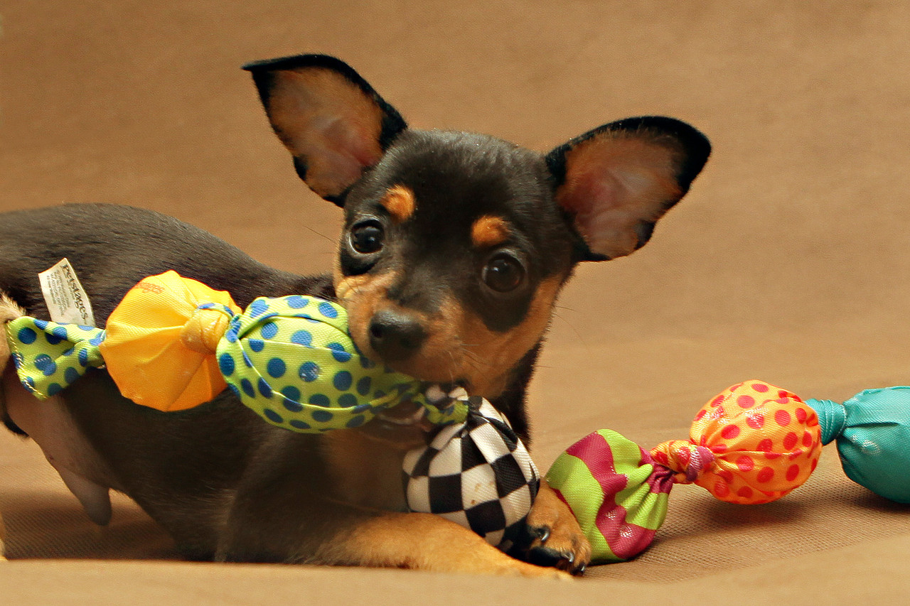 Желательно приобрести игрушки для домашнего друга. Неплохи и интересны собаке игрушки-пищалки — резиновые косточки, мячики (гладкие, без шипов, среднего размера, чтобы собака в процессе игры не могла проглотить изделие или откушенный от него кусочек). Нежелательно давать в качестве игрушек те изделия, которые предназначены для кошек. Даже миниатюрный размер той-терьеров все же не делает его зубы слабыми. А маленький размер желудка может привести к необходимости операции. Мягкие плюшевые игрушки чреваты нарушением прикуса. Если животное уж очень хочется порадовать мягким другом, стоит выбрать тканевую (или с небольшим ворсом) игрушку, предварительно убедившись в том, что носик, глазки и другие детали пришиты или приклеены крепко-накрепко.