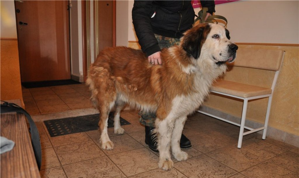 Помесь с московской сторожевой – грациозная собака с мощными и сильными лапами, широкой грудью и густым подшерстком. Хвост у таких особей купируется. Уши треугольные, висящие. Внутренняя сторона лап, брюшко и грудка могут быть абсолютно белыми.