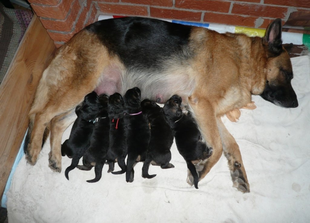 сразу после родов дать овчарке теплый, не очень жирный мясной бульон;