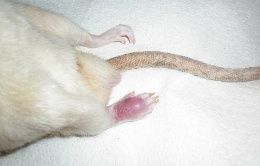 Иногда можно обнаружить опухоль под лапой у крысы. Шишка под лапой оказывается воспаленным лимфатическим узлом, жировиком или опухолью молочной железы.