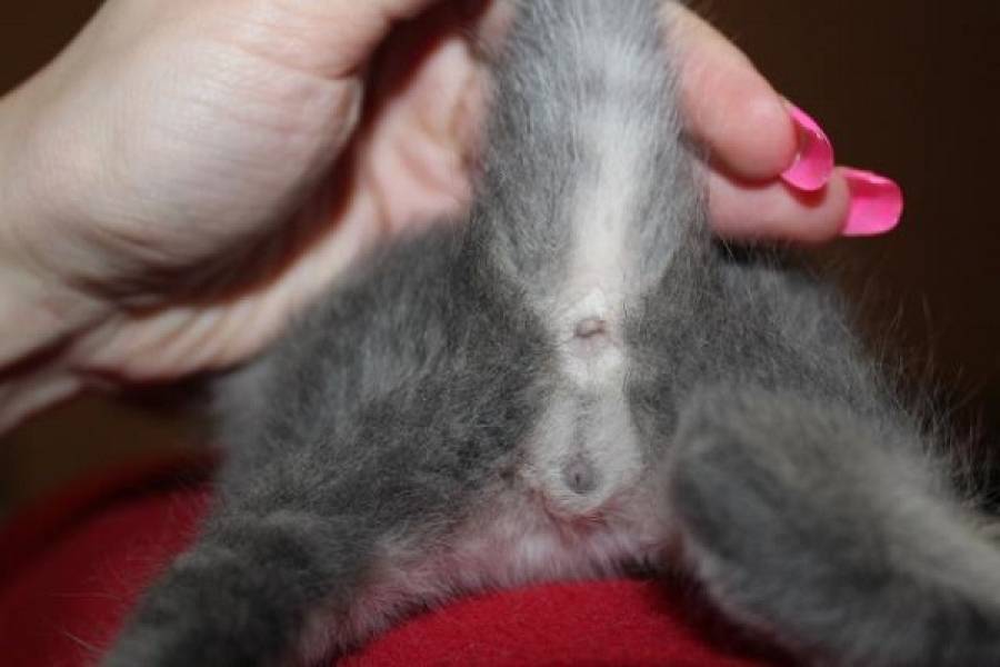 Осмотр котят производится очень осторожно. Необходимо аккуратно приподнять малышу хвостик и посмотреть, как расположено отверстие ануса относительно полового органа