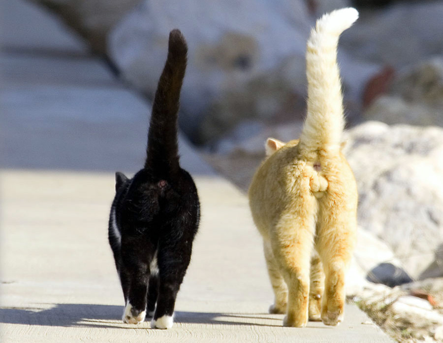 - Загляните котейке под хвост. Если это мальчик, то анальное отверстие и половой орган похожи на двоеточие: мы видим две точки параллельные друг другу. А если это девочка, то видим восклицательный знак: мочевыводящий канал выглядит как щель.