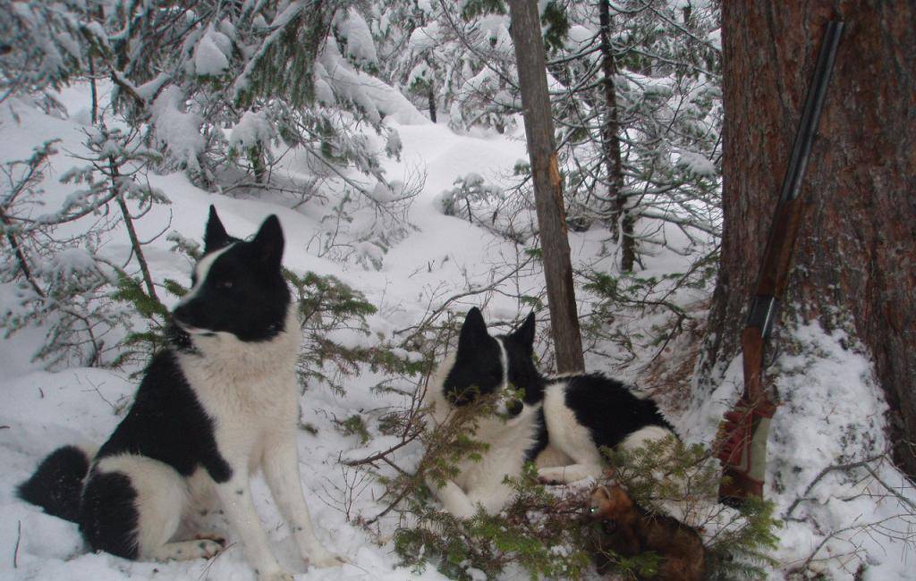 Особенность охоты с лайкой в том, что собака благодаря своим природным инстинктам и охотничьим качествам должна самостоятельно найти добычу, облаять, указывая хозяину место своего нахождения, и дождаться его прихода.
