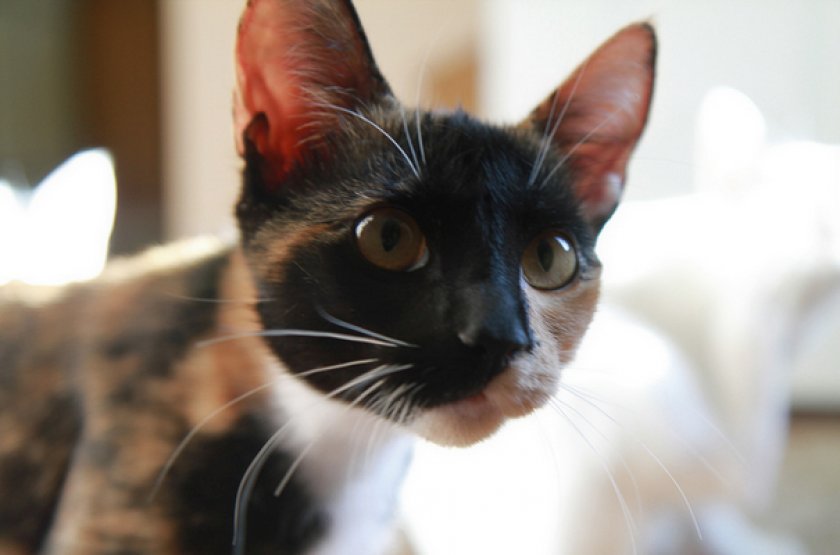 Если кошка испугана – она смотрит на хозяина широко открытыми глазами, зрачки расширены.