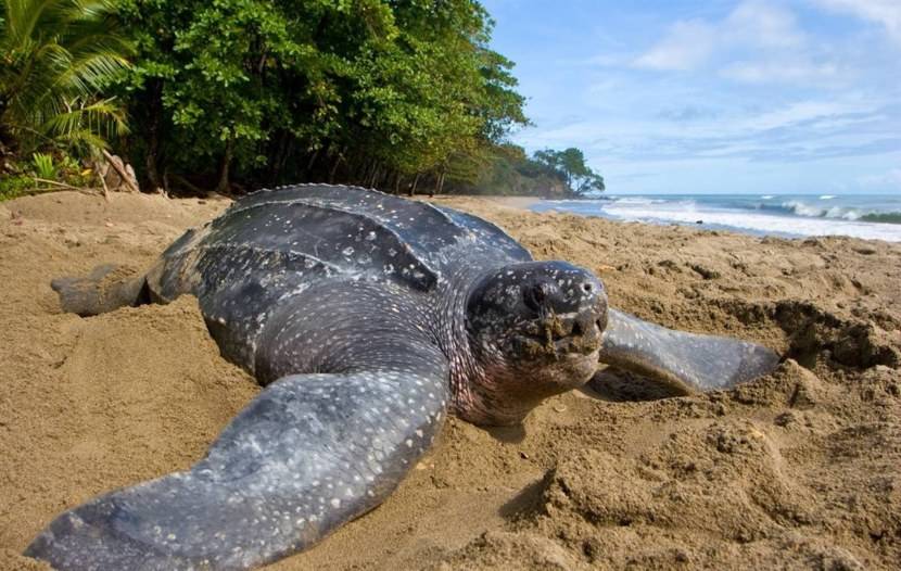 Кожистая черепаха — это самая большая из всех существующих видов черепах. Они достигают впечатляющих размеров, с длиной тела, превышающей 2 метра, и массой до 900 кг. Отличительной особенностью кожистых черепах является отсутствие твердого панциря; вместо этого их спина покрыта гибкой кожей и рядом пластинчатых образований. Кожистые черепахи широко распространены в океанах по всему миру и питаются преимущественно медузами.