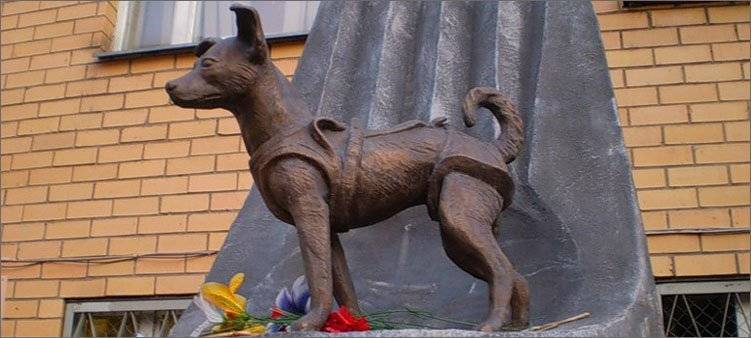 Легендарный поступок беспородной собаки стал идеей для памятника у С. Пахомова и П. Медведева. Монумент в виде двухметровой ракеты с первым зверем, полетевшим в космос, сегодня стоит в московской Петровско-Разумовской аллее, на территории института военной медицины.