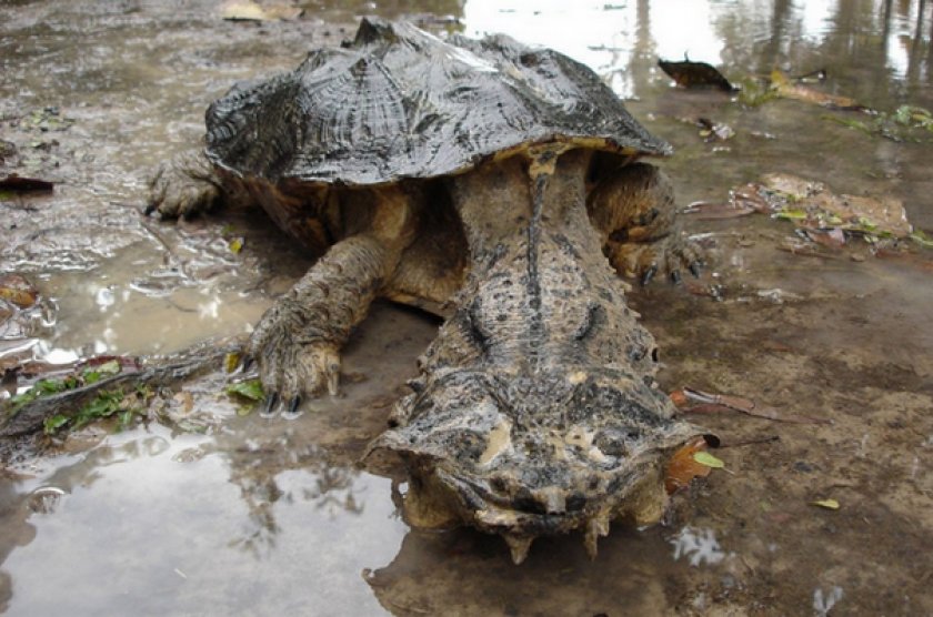 А сверху он напоминает горный архипелаг, который состоит из трёх рядов конусных бугорков. Эта своеобразная броня бывает всех оттенков коричневого и грязно-зелёного цветов. Черепашья кожа тоже коричневая или серая. Такая цветовая гамма позволяет её хозяйке маскироваться в мутной воде среди деревянных коряг и успешно охотиться.