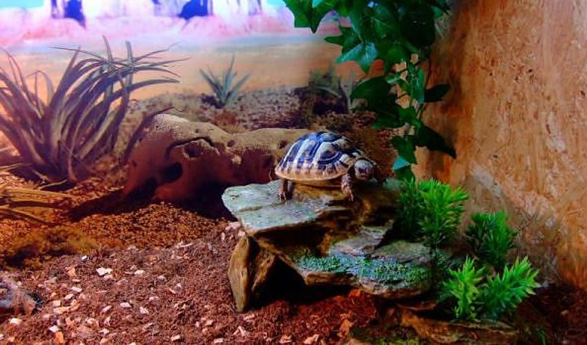 Обратите внимание, что по краям террариума рекомендуют разместить плоские камни, которые черепаха использует как для игр, так и для стачивания своих когтей.