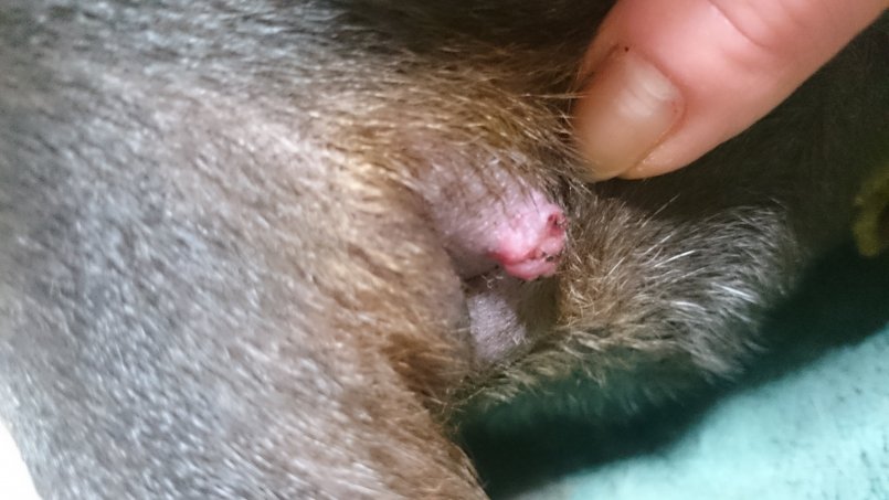 Осторожно введите указательный палец, смазанный вазелином, в анальное отверстие животного. Ладонь должна находиться в положении – перпендикулярно полу.