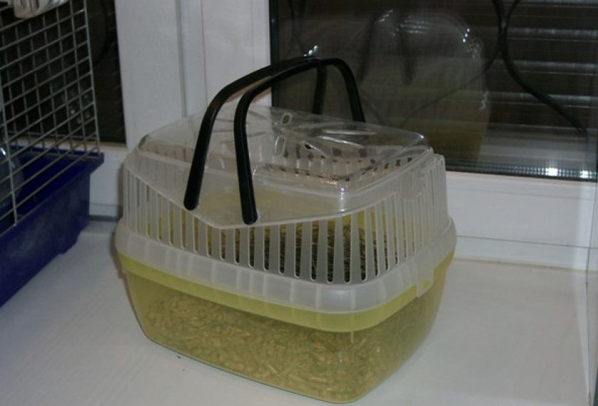 Что касается габаритов, то для одного зверька вполне достаточно переноски размером 15х20х20 см, конечно, если вы не планируете переезд в другую страну. В последнем случае лучше подготовить специальную транспортировочную клетку, куда можно будет установить поилку и кормушку.