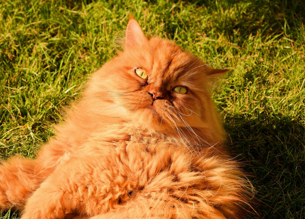 Когда котик настолько хорош в своём деле, что научился валяться одновременно и на травке, и на солнышке.