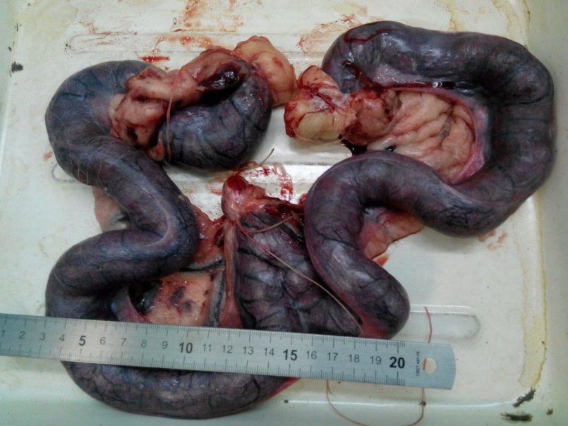 Диагноз ставится по результатам клинического осмотра, у небольших животных, с нормальной упитанностью, можно пропальпировать стенку и рога матки, если животное упитанное или стенка матки тонкая, с небольшим количеством содержимого пропальпировать ее будет довольно сложно, поэтому мы всегда, при подозрении на пиометру, для подтверждения диагноза делаем УЗИ матки или рентген.