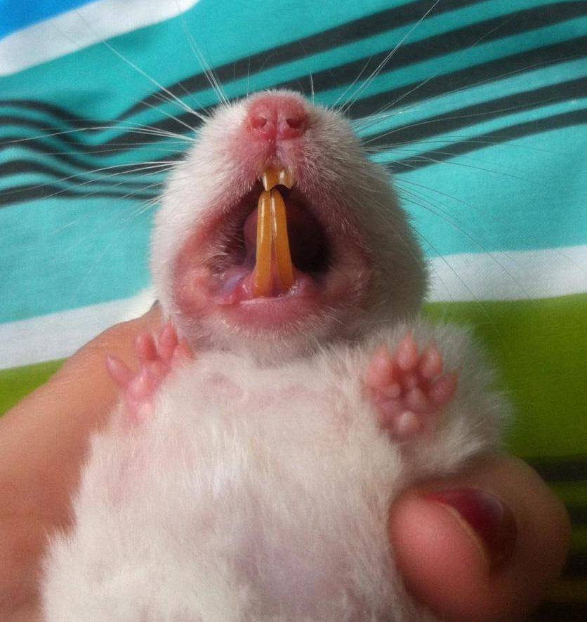 Особенностью физиологии грызунов является стремительный рост зубов, которые периодически необходимо стачивать. Для этих целей питомца необходимо обеспечить корешками растений, сухими ветками, меловым камнем. Иначе малышу придется пробовать стачивать зубки об хозяйские руки.