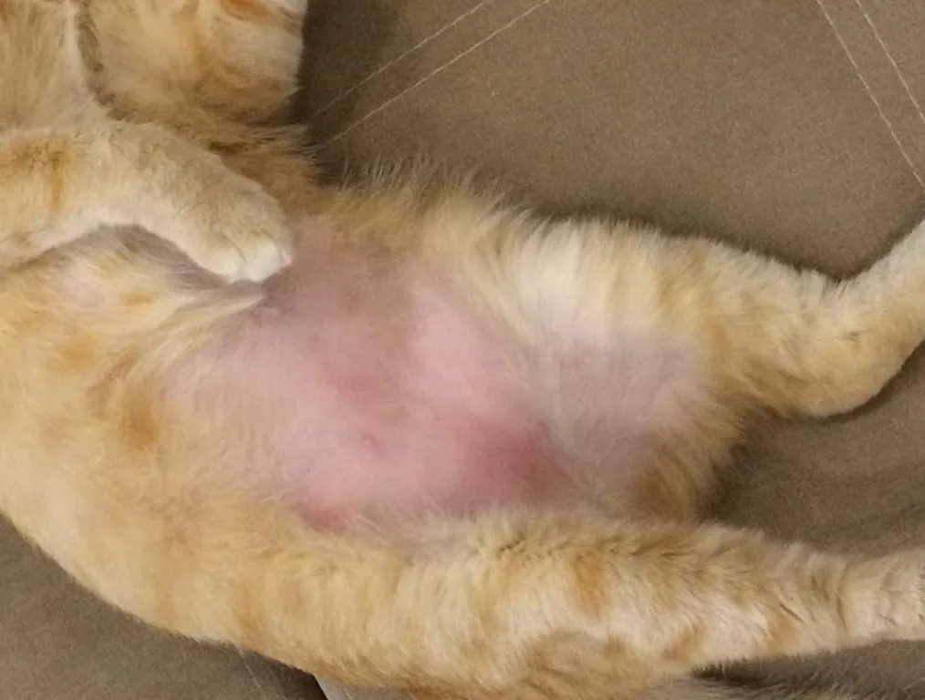 Вылизывание до лысин на животе