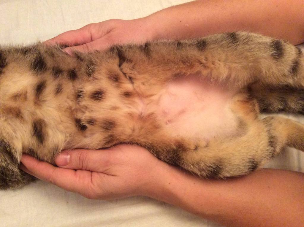 Вылизывание живота до кожи у кошки может быть вызвано несколькими причинами: