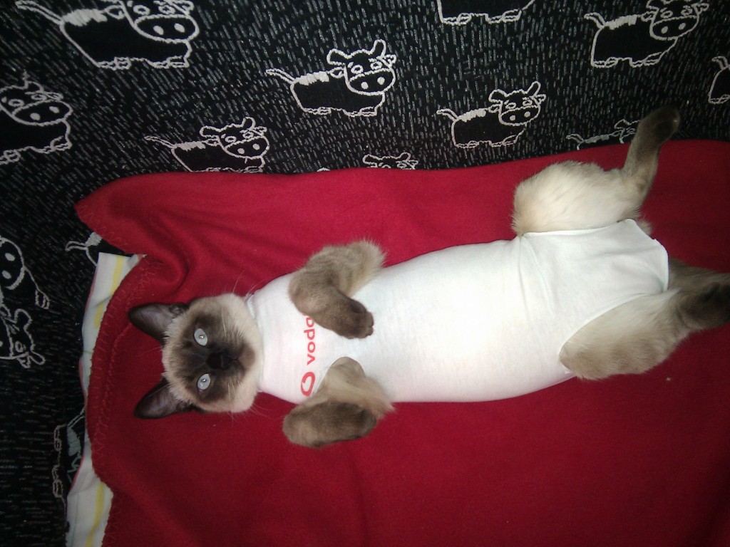 После операции у кошки может возникнуть еще одна проблема: она не достает языком до половых органов и ануса, чтобы помыть их. Может показаться, что в этом виновата попона. На самом деле, если она завязана правильно, не слишком туго, а размер подобран верно, то дело не в попоне. Проблема в том, что тянет шов: он-то и не дает питомице быть гибкой. Тянуть он перестает уже через 5-7 дней: и тогда кошка сможет помыться даже в попоне.
