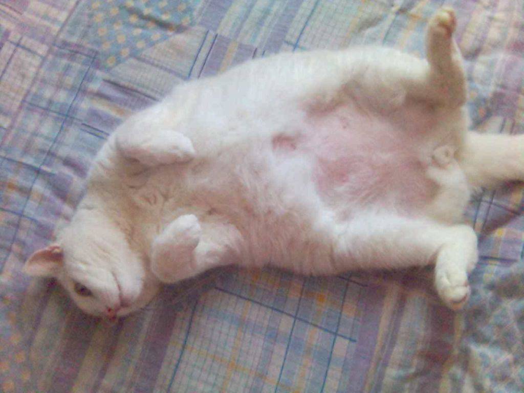- В случае когда лысое пятно на животе образуется из-за кровососущих паразитов, кошку необходимо обработать специальными веществами, а также добавить в ее рацион иммуностимуляторы и витамины.
