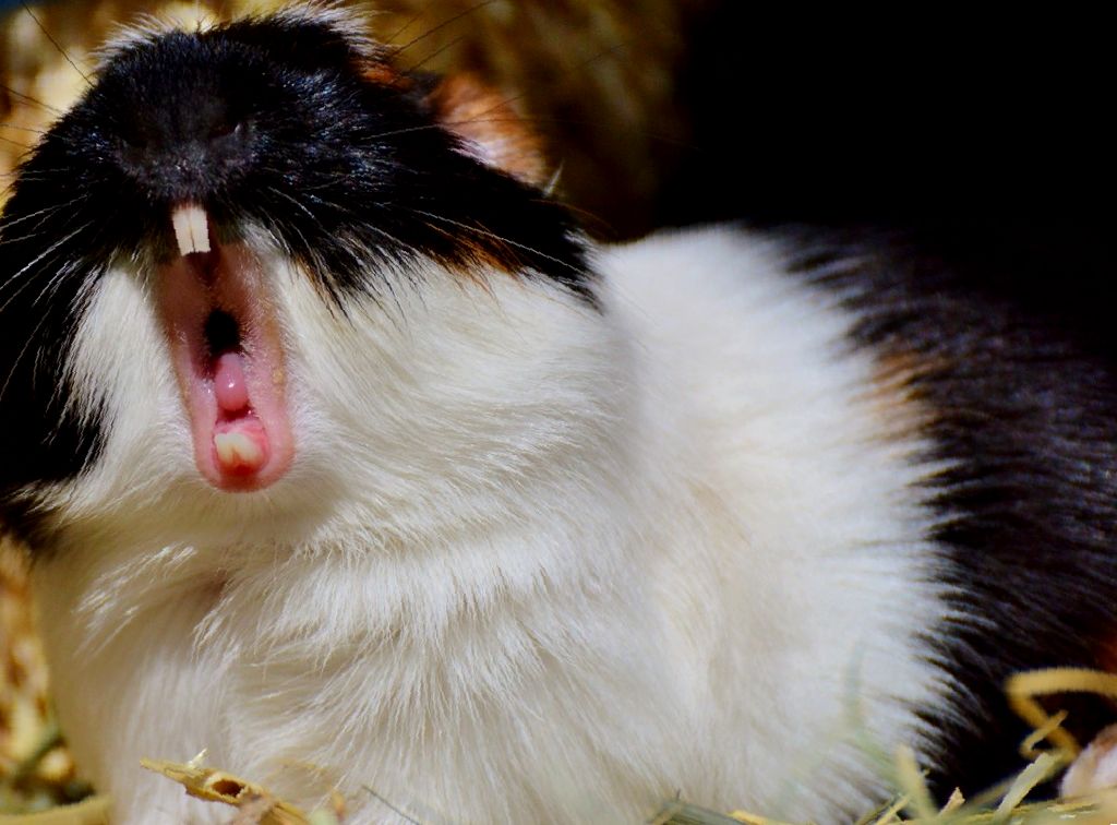 Если ваша морская свинка скрежещет зубами и при этом вам кажется, что ей трудно есть, брать корм или жевать – это может быть признаком стоматологических проблем. При этом животное так же может терять вес. Помните, что зубы морской свинки растут постоянно и требуют постоянного наличия в рационе грубых кормов, сена, веток для полноценного стачивания зубов (подробнее читайте статью «Болезни зубов у морских свинок»). Если зубы свинки разрастаются, ей становится трудно откусывать и жевать пищу, и может скрежетать зубами в попытке их стереть и уменьшить. Любая проблема, вызывающая отказ от корма или невозможность питаться очень серьёзна, нужно срочно провести осмотр ротовой полости у ветеринарного специалиста и выяснить, не нуждается ли грызун в коррекции прикуса, в шлифовке зубов и т.п., чтобы вернуть его способность жевать.