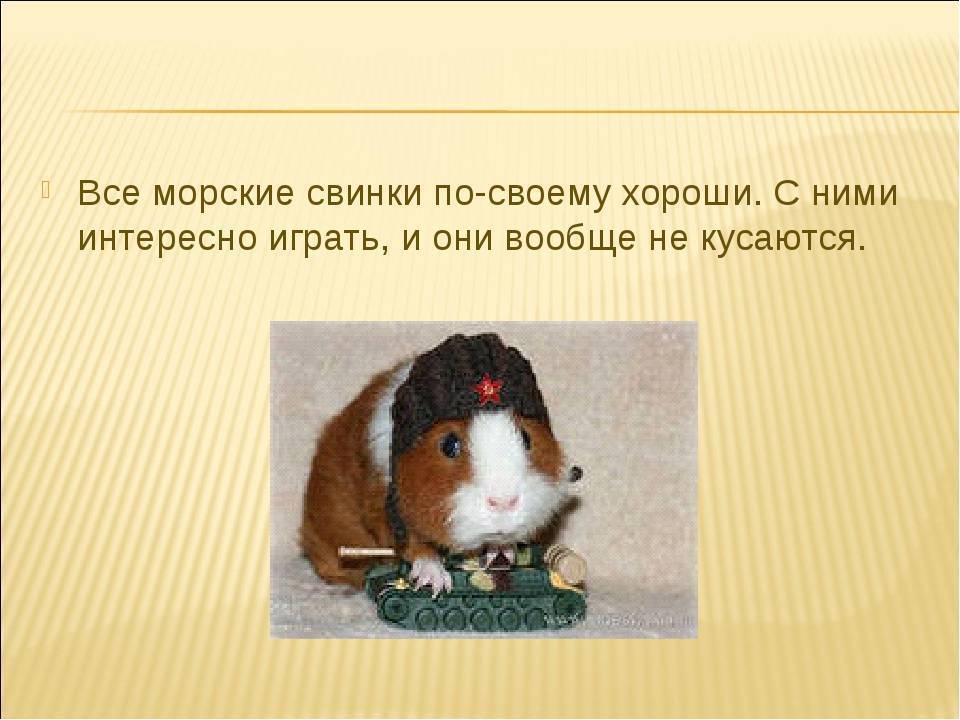 Мы видим, что морская свинка имеет к морю самое что ни на есть косвенное отношение, так как ее родина находится за океаном, то есть, как говорили раньше, «за морем». Да и плавать она не умеет, так как является сугубо сухопутным животным и не терпит воды. Но, тем не менее, до сих пор некоторым несчастным зверькам приходится расплачиваться за ошибки и незнание людей. Достоверно известны случаи, когда приобретенную для своих детей морскую свинку новые хозяева пускали в аквариумы с рыбками или емкости с водой, чтобы зверьки там «поплавали» — они ведь «морские»! А после того как эти бедные животные, обессилев от барахтанья в воде, тонули, некоторые из них звонили в зоологические магазины и с возмущением жаловались на гибель приобретения.