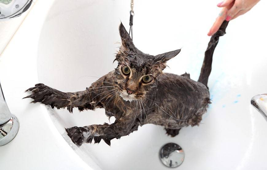 - избегать попадания воды в ушные раковины кошки во время купания;
