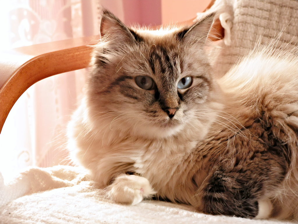 Особняком идет сибирский колор пойнт или невская маскарадная кошка. У этой разновидности отдельные участки тела (мордочка, лапы, хвост, уши) окрашены в более темные тона чем основной фон тела. Такой окрас еще называют сиамский.