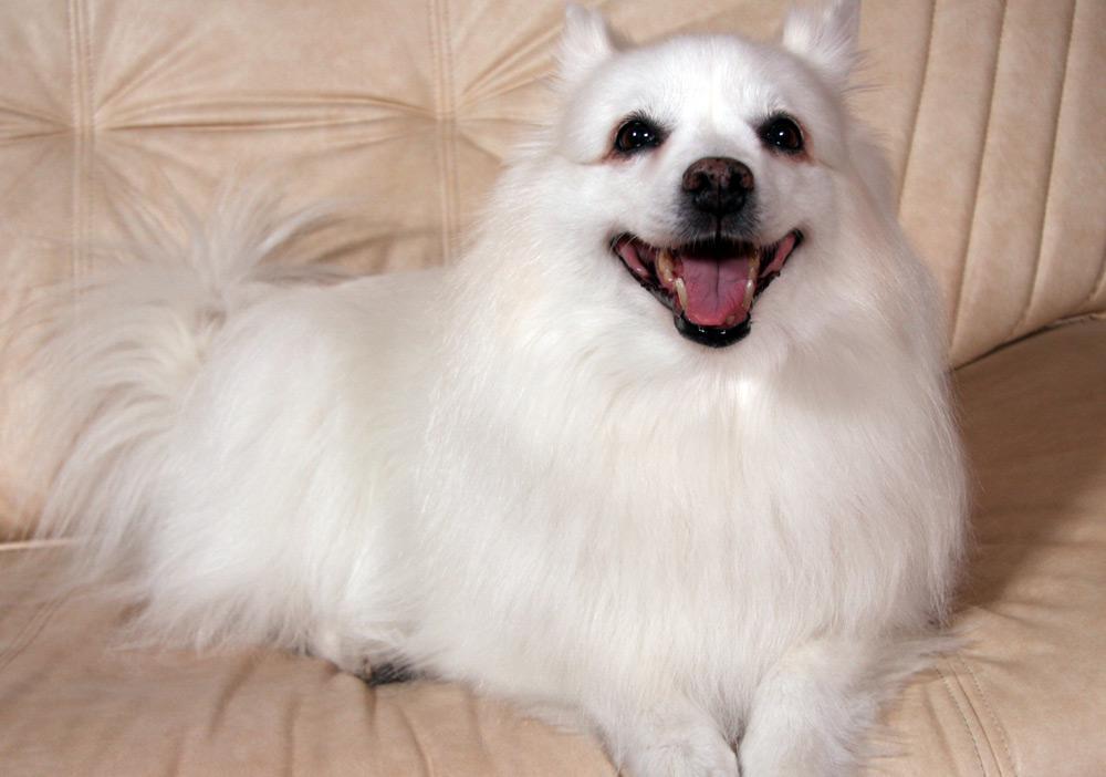 Американский шпиц (фото выше) не нуждается в стрижке, однако, для того чтобы животное не мучилось от свисающей шерсти, ее возможно стричь исключительно между пальцев.