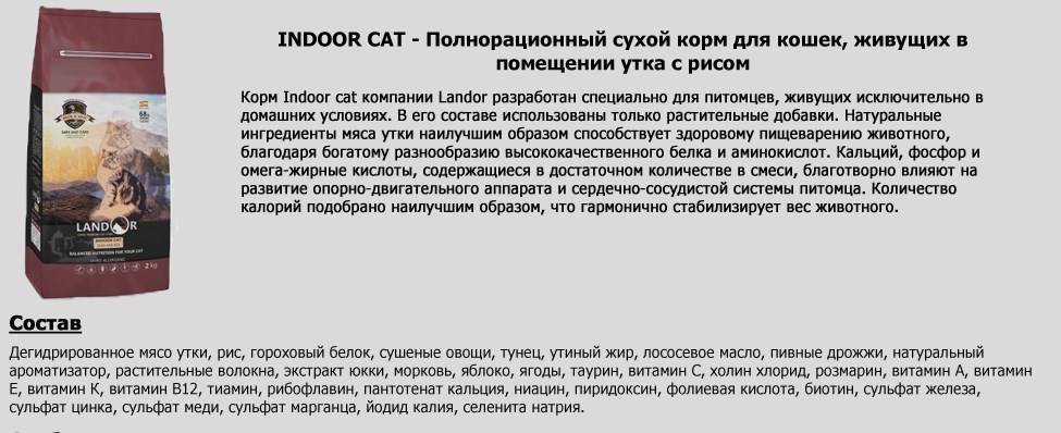 Состав сухих кормов для кошек Landor