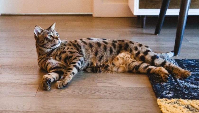 Кошка с леопардовым окрасом отличается своим величественным станом и грациозностью. Они весьма общительны, очень нежные и чуткие животные. Как ни странно, эти кошки любят принимать ванны и сидеть на плечах у хозяина.