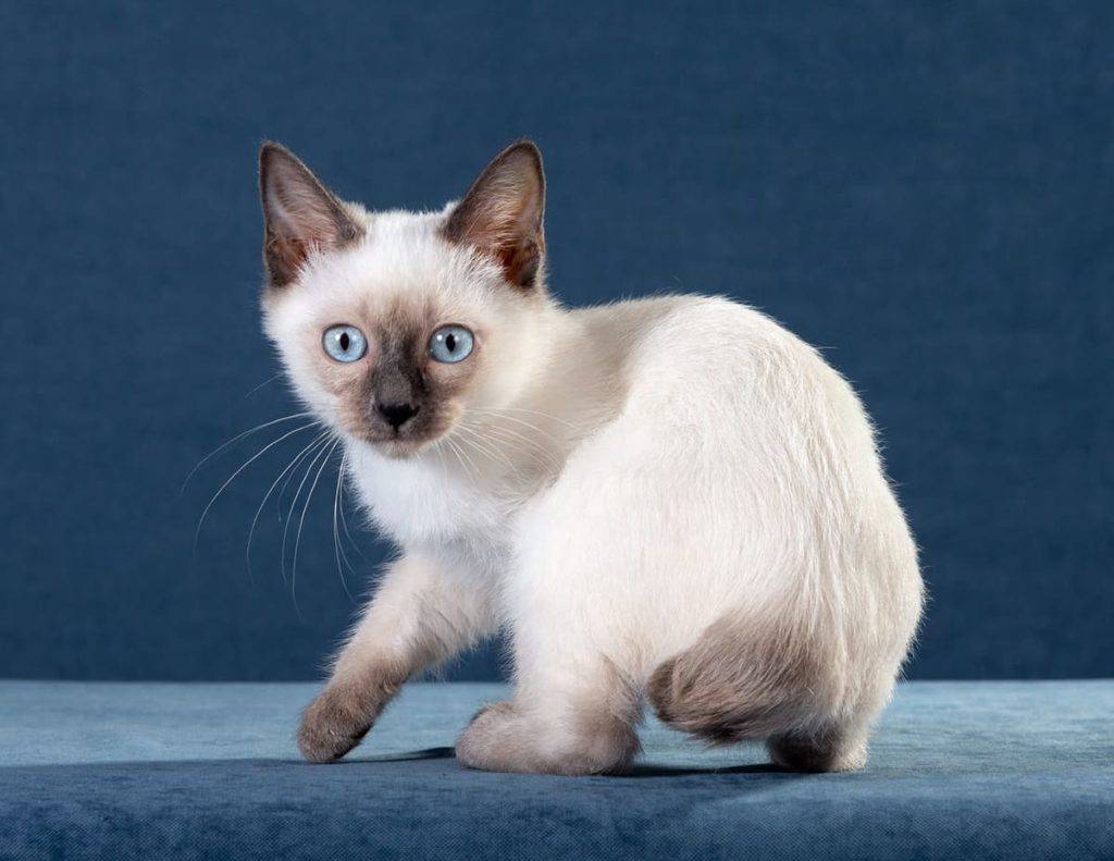 Представители этой породы признаны в качестве питомцев с наименьшими параметрами. Взрослый самец может набрать вес от 1,5 до 2 кг, а масса самочек не превышает 0,9 кг. По внешнему виду синеглазые котики с черными лапками напоминают сиамцев. Отличительным признаком является укороченный хвостик.