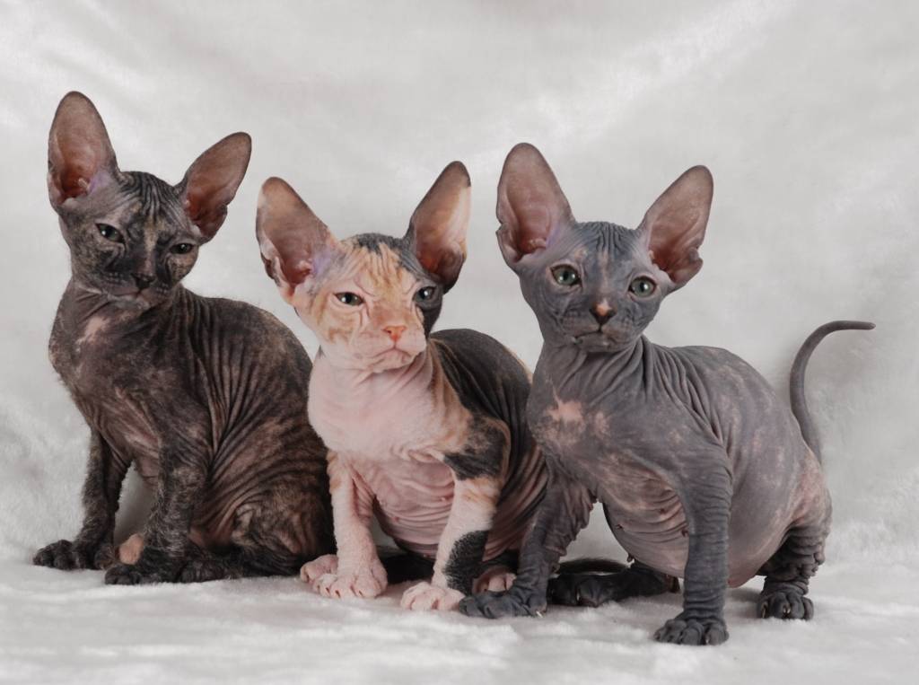 Эта порода каждому придет на ум, кто слышит о лысых кошках. Эта порода обладает своими неповторимыми чертами, причем даже в пределах одной породы или выводка. Если один котенок имеет ровный розовый окрас, то другой будет пятнистым. У третьего выражение мордочки из-за кожных складок будет напоминать сердитый прищур, а другие наоборот – будут казаться самыми добрыми и милыми.